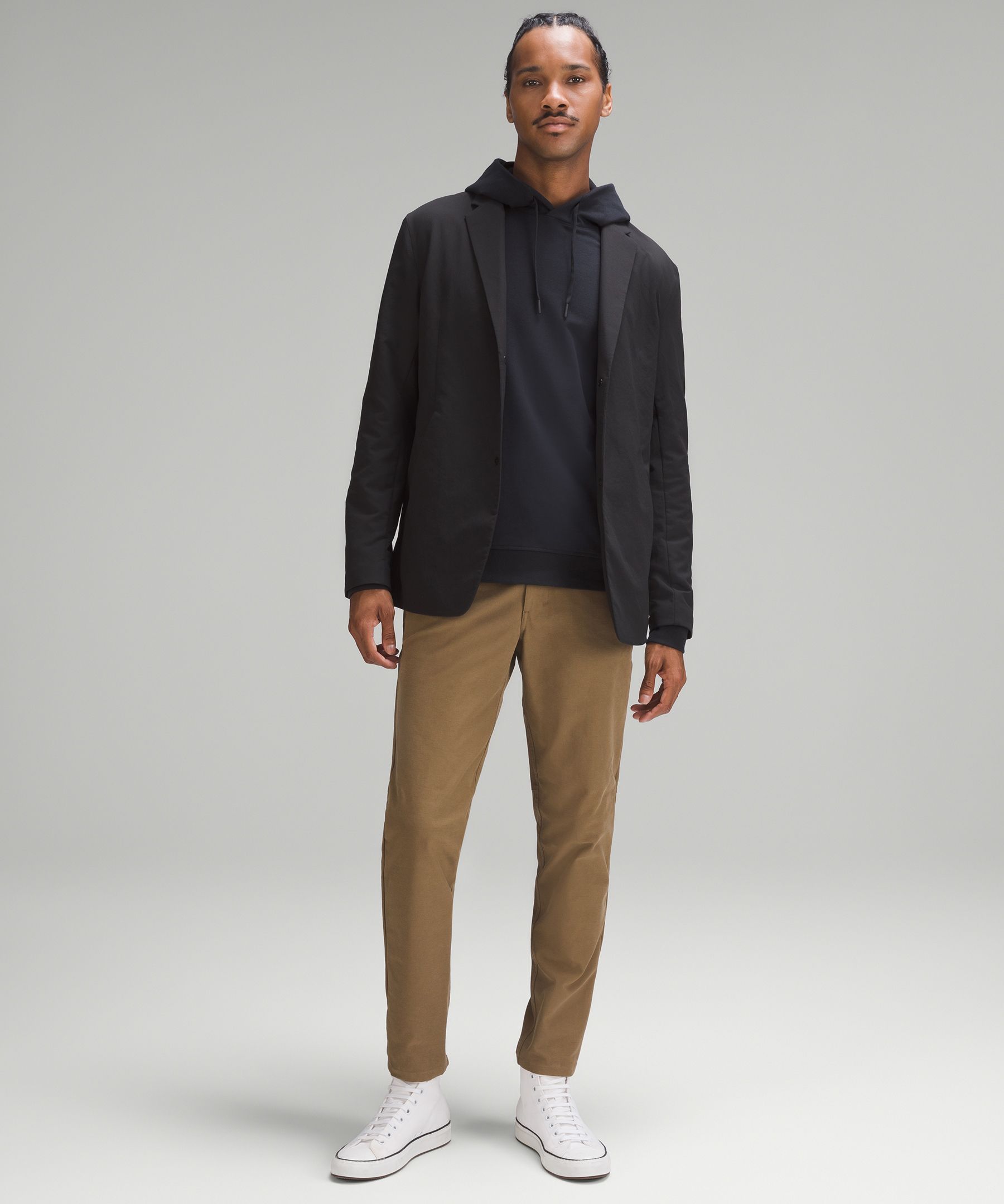 Cotton-blend, four-way stretch fabric unlocks the freedom to move in total comfort.