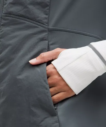Four-way stretch, breathable tech fleece fabric is DWR-treated to protect you from the elements