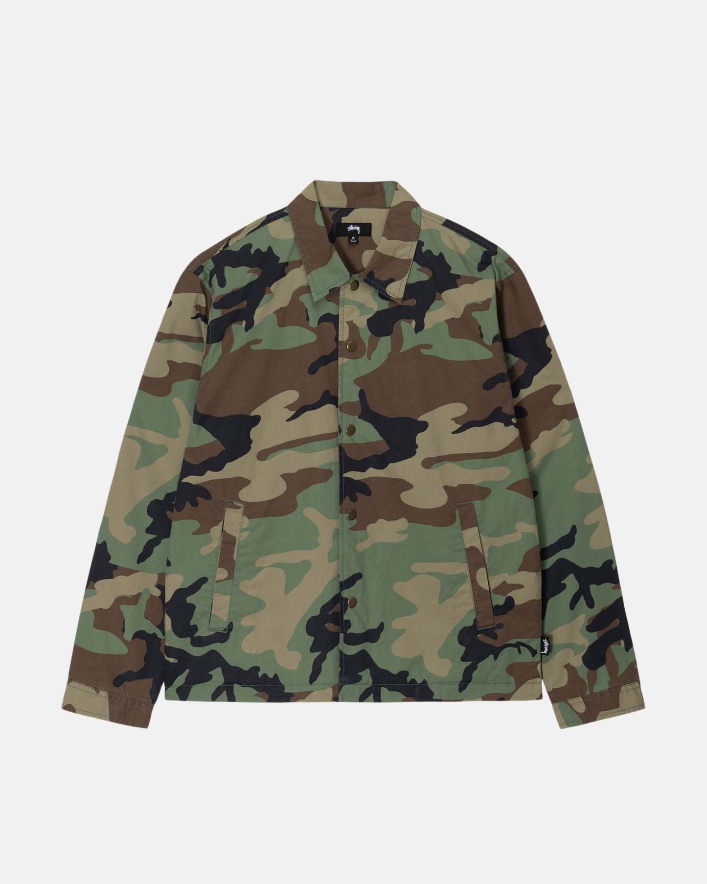 Poplin Coach's shirt jacket with St\u00fcssy logo printed across back.