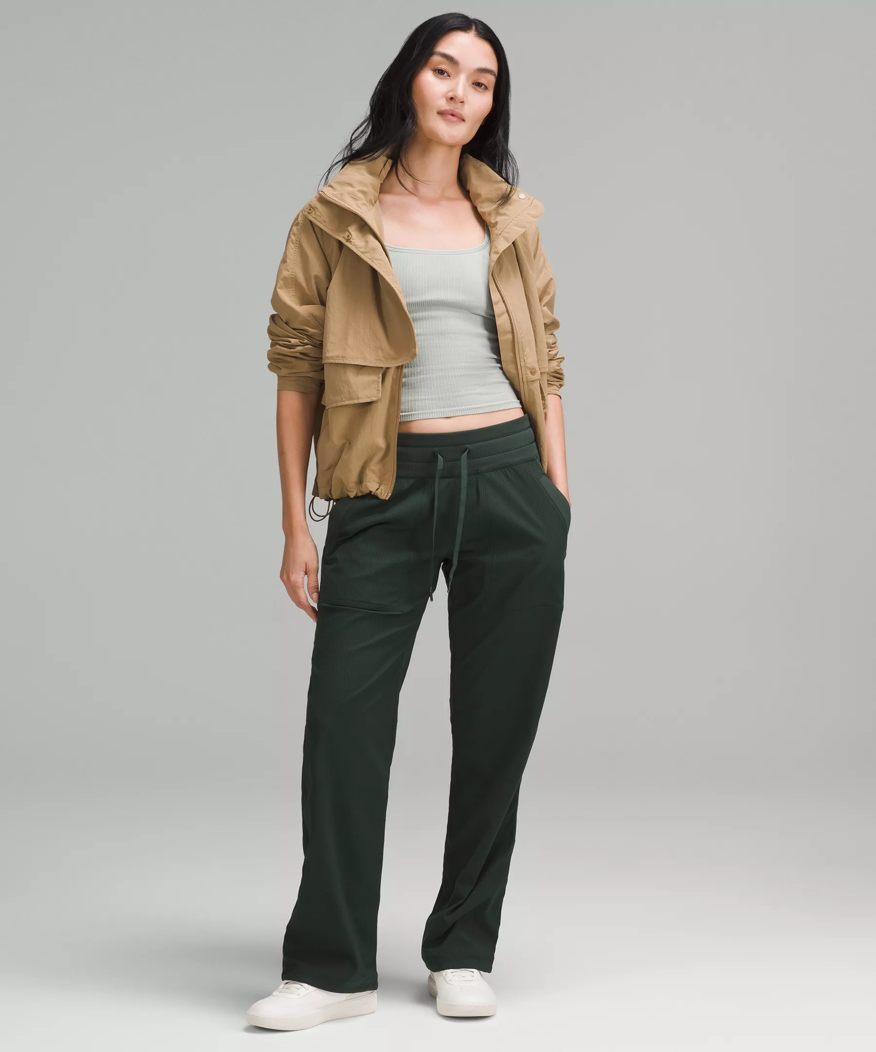 Hem drawcords let you adjust your look