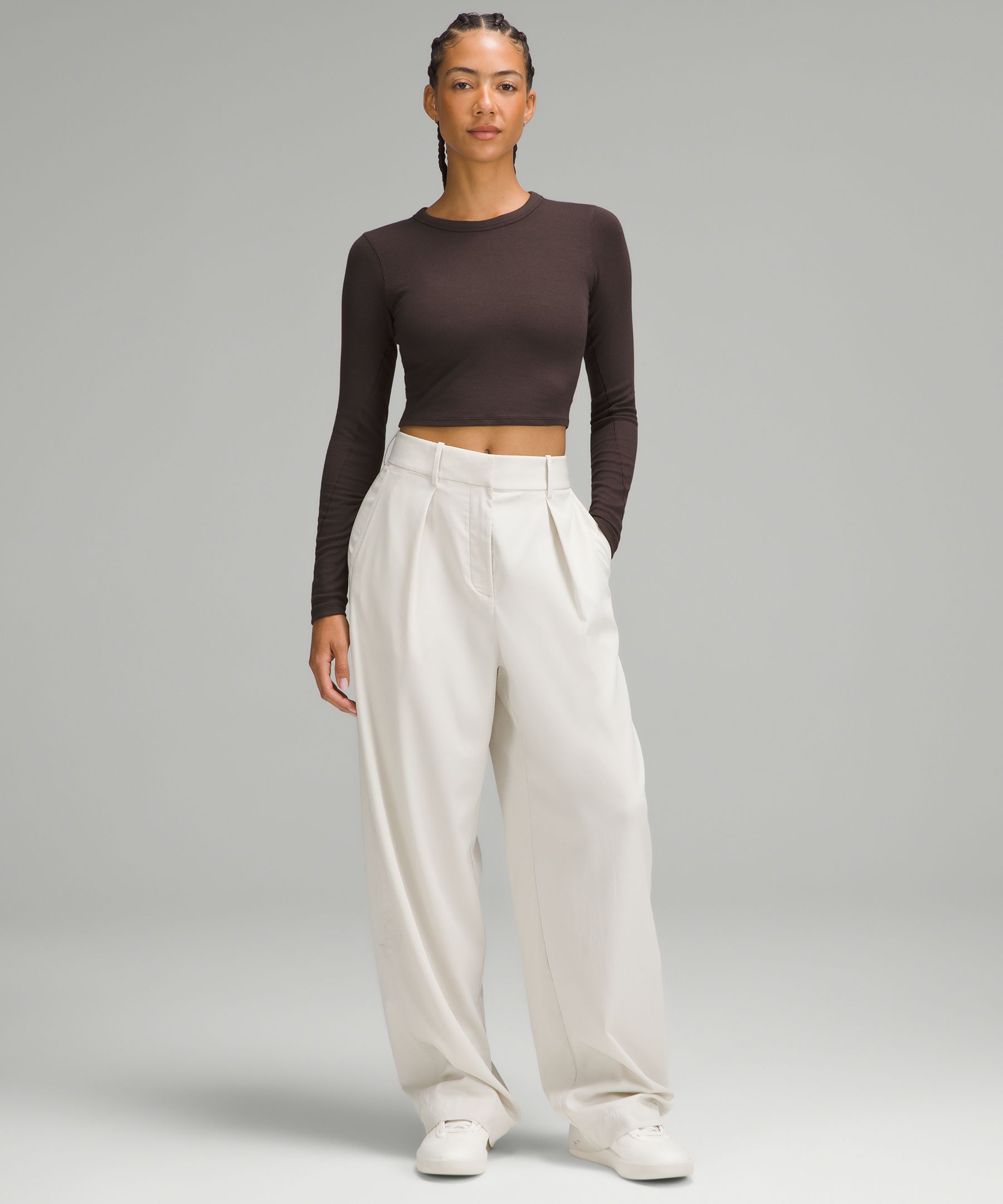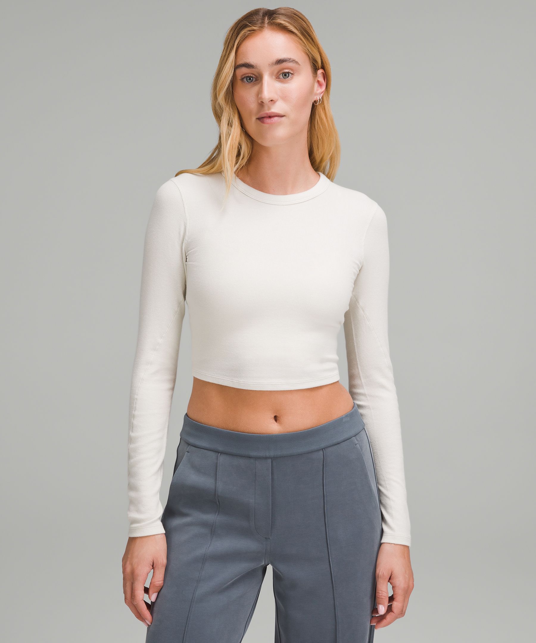 Hold Tight Straight-Hem Cropped Long-Sleeve Shirt