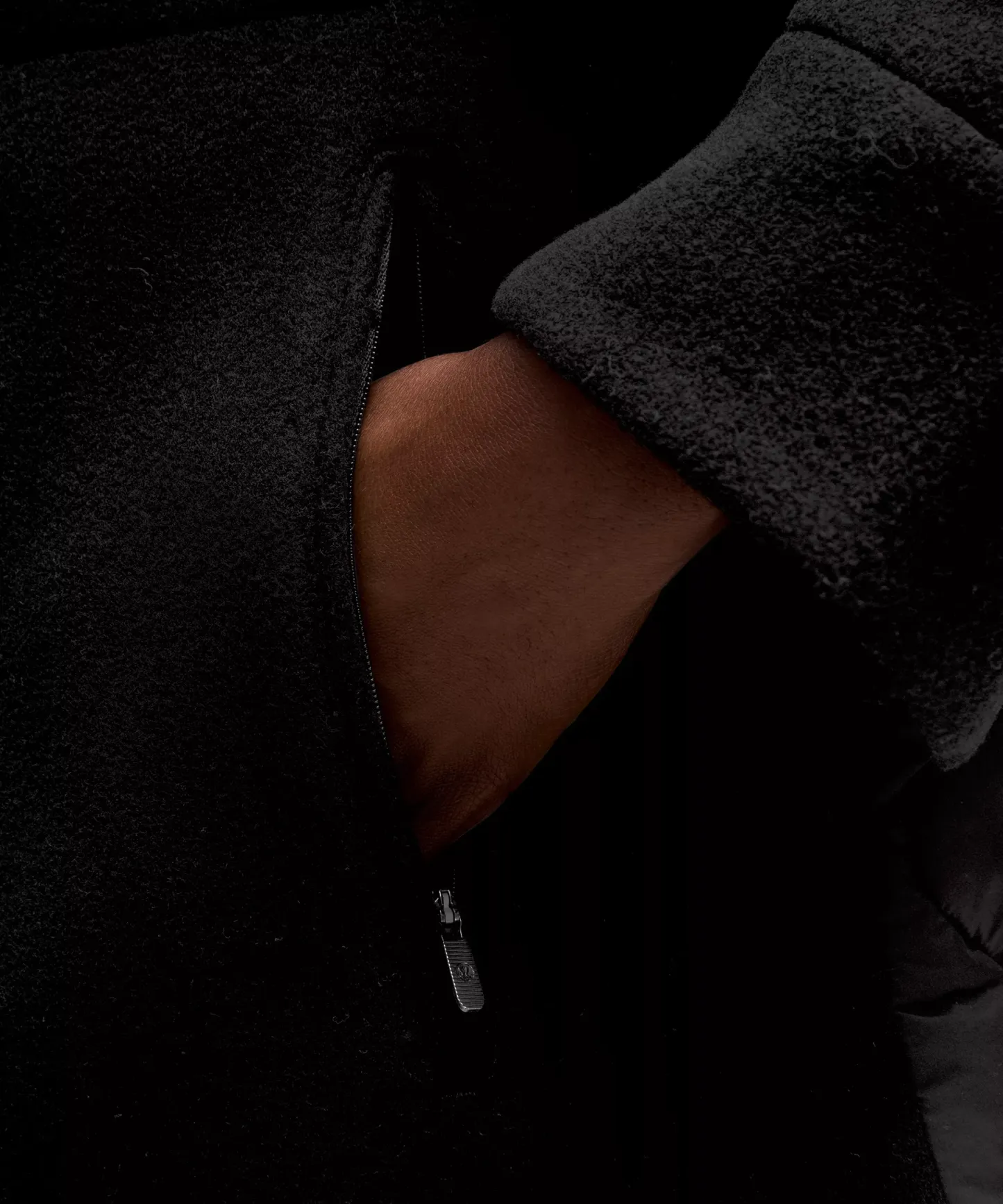 - Zippered chest pockets and secure hand pockets with a hidden phone sleeve