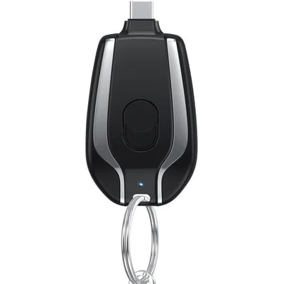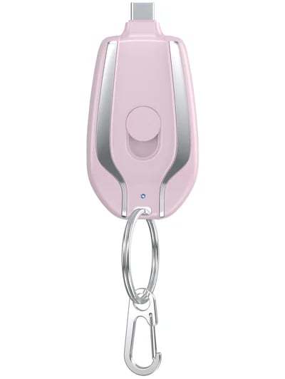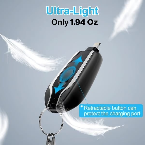 This is a keychain can be hung on the charging treasure, when you use only need to turn on the switch, plugged directly into the phone can be charged, the data line is not needed, it is small and convenient, out of emergency is very convenient.