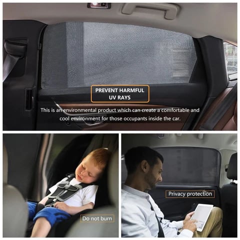 The side window shade is made of a flexible, stretchy mesh material that helps block the sun, making your child safer and your car cooler. and can be used for at least 2-3 years/strong>it won't hurt your car's paint job or its interior, either. This durable, lightweight fabric simply pulls down over the car door. provide your passengers with the most comfortable travel experience. Best sun shade and they keep the bugs out.