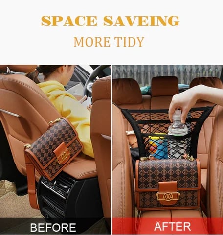 Large capacity net bag design, Space-saving, you can store everything you can put down all gadgets, such as water, drink, tissues, snacks, and book. Keeps your pocketbook within reach, greatly reducing distracted driving situations.