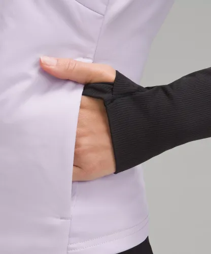 Four-way stretch, water-repellent tech fleece fabric is brushed for warmth