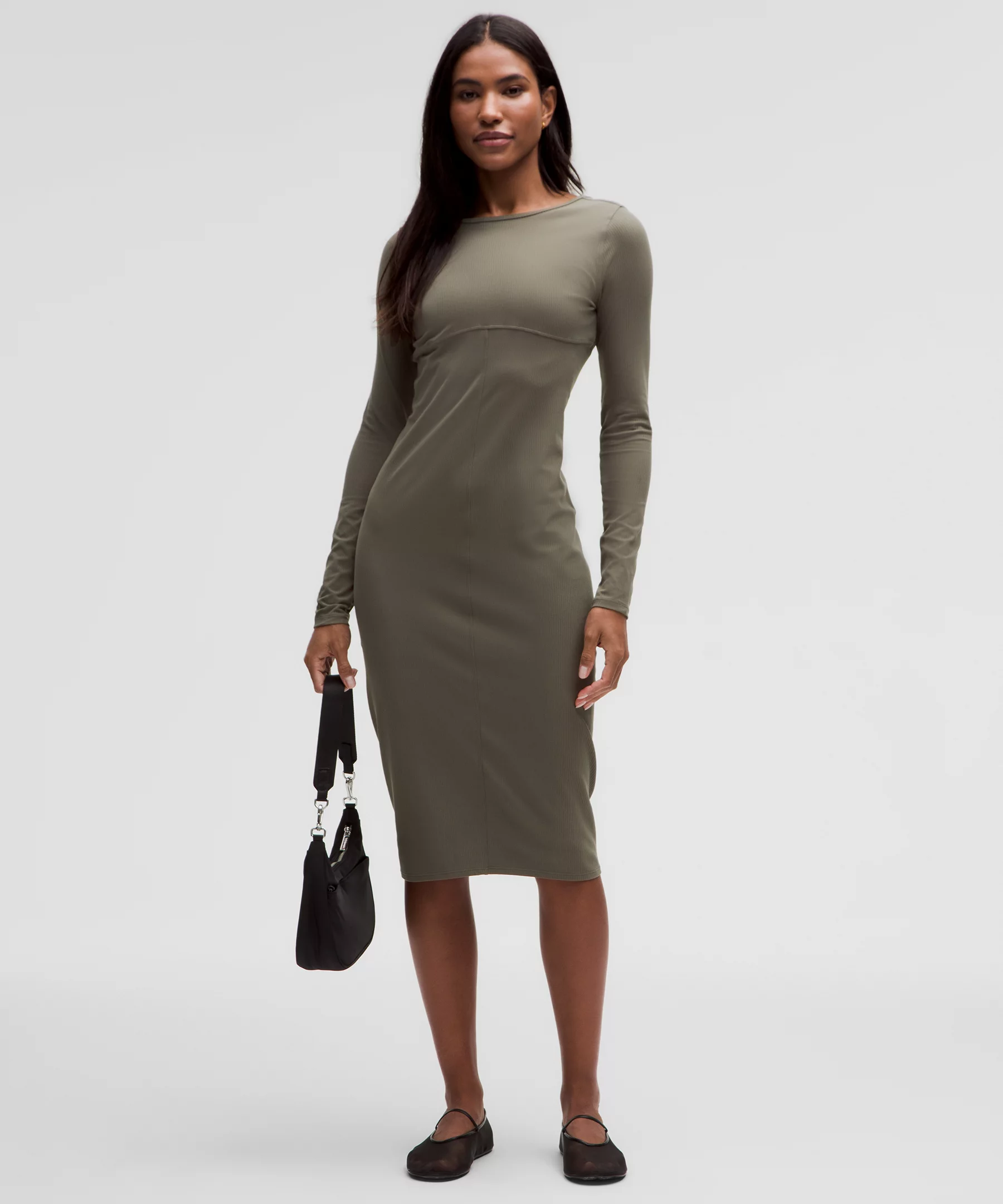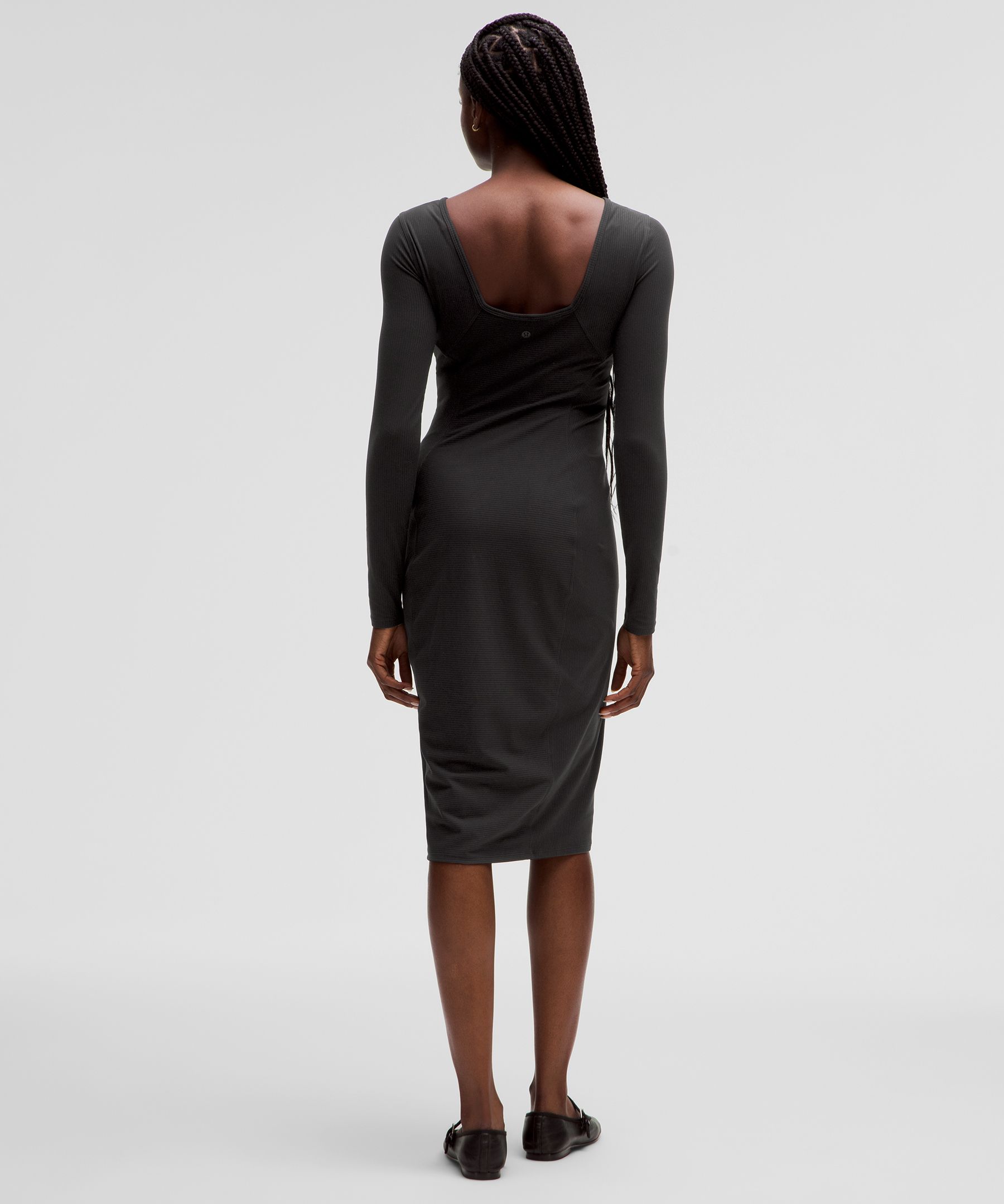 Ribbed Nulu Scoop-Back Long-Sleeve Dress