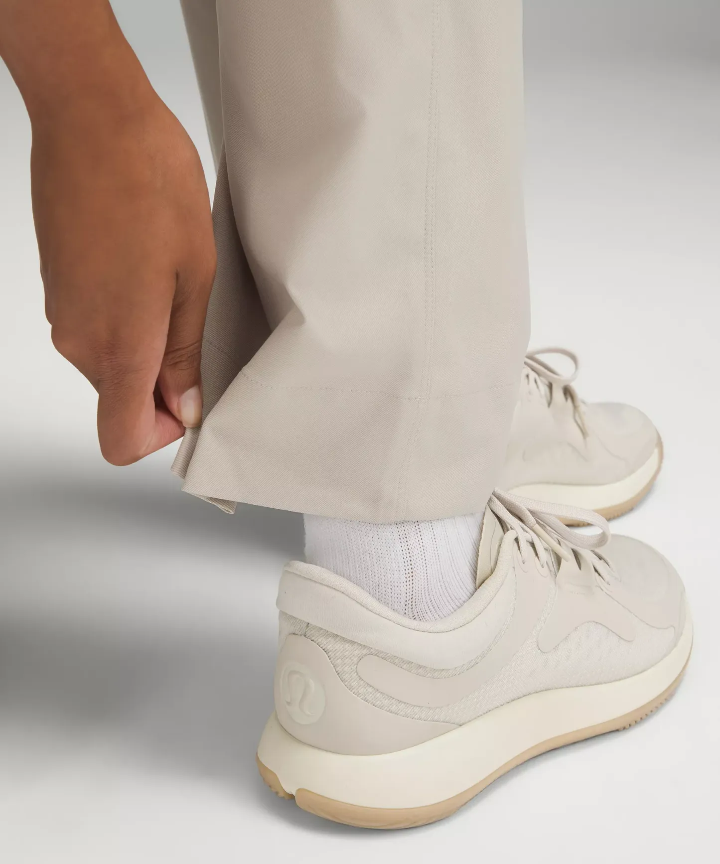 - Discreet magnets inside the hems let you adjust the lower-leg shape from straight to tapered