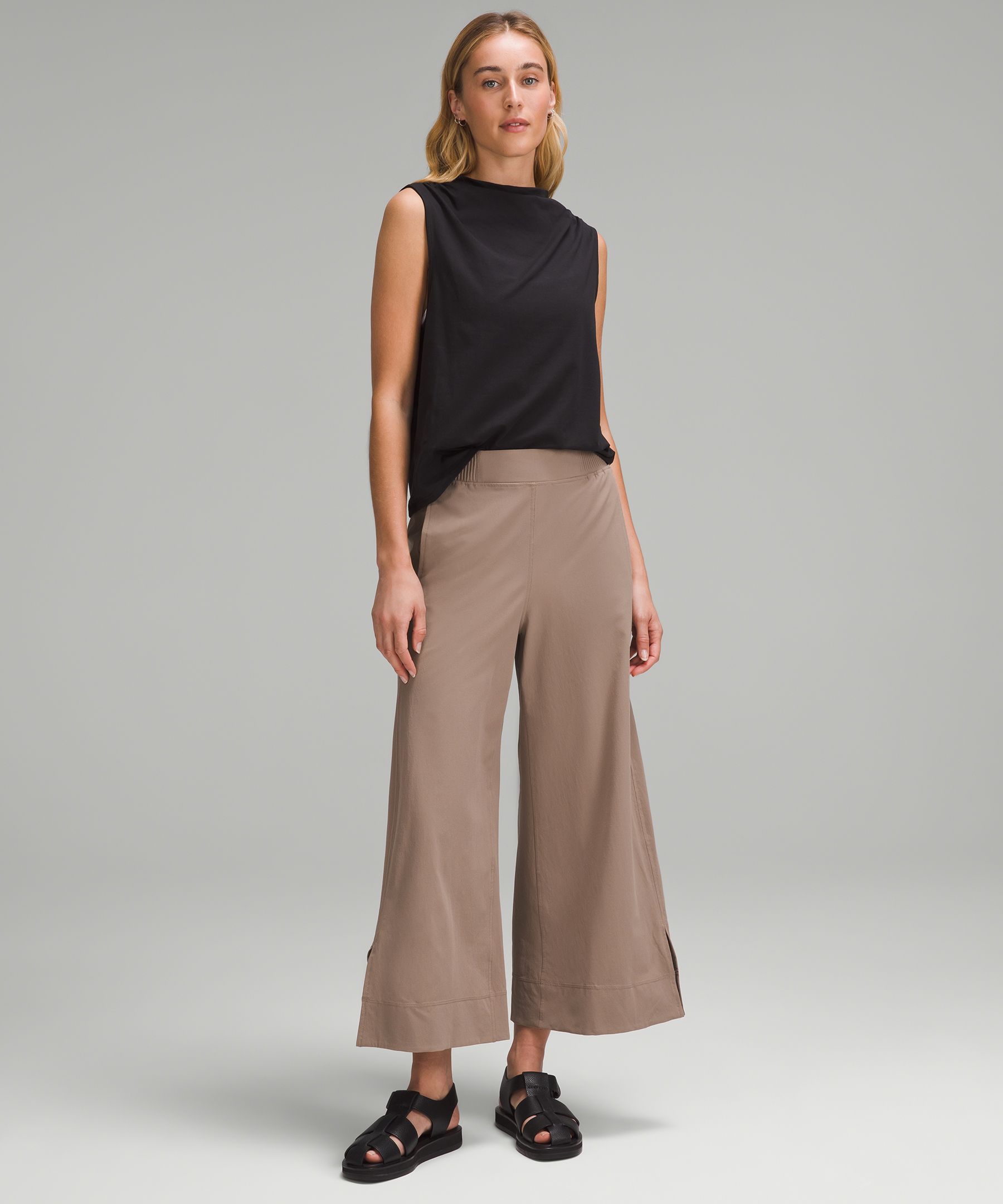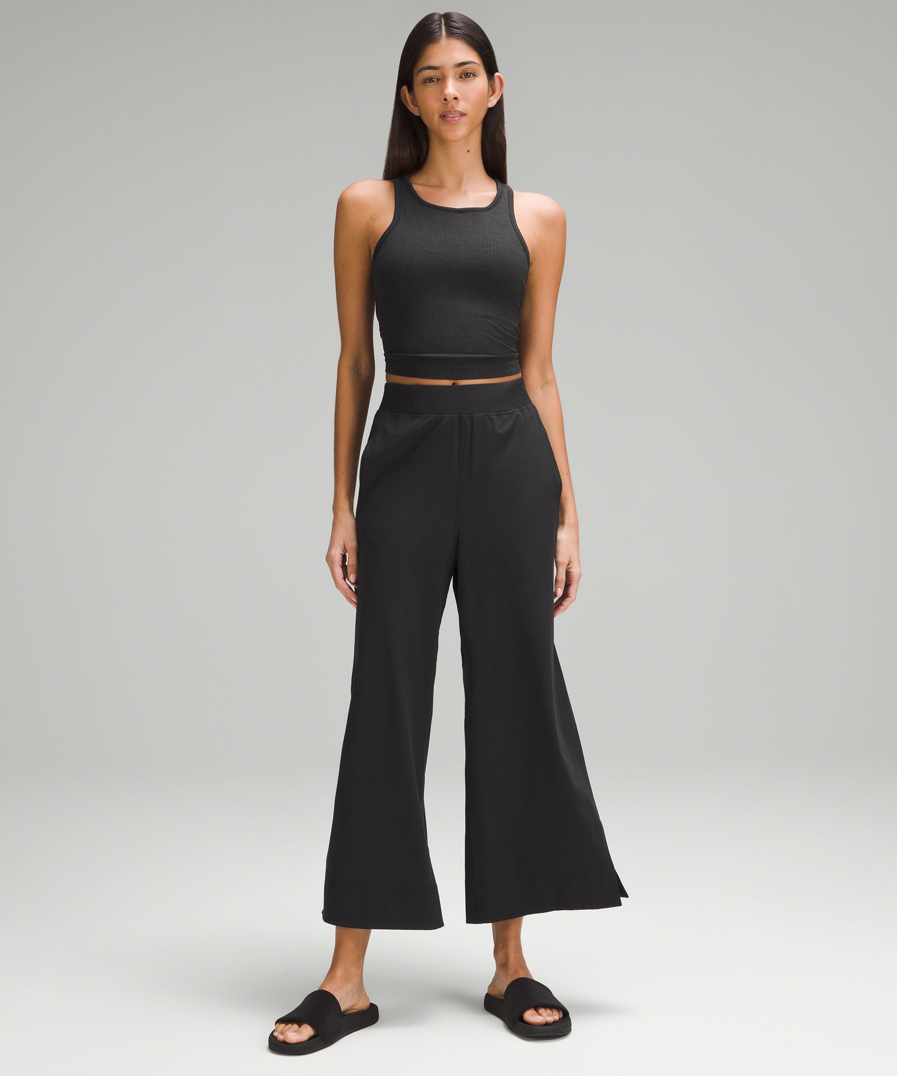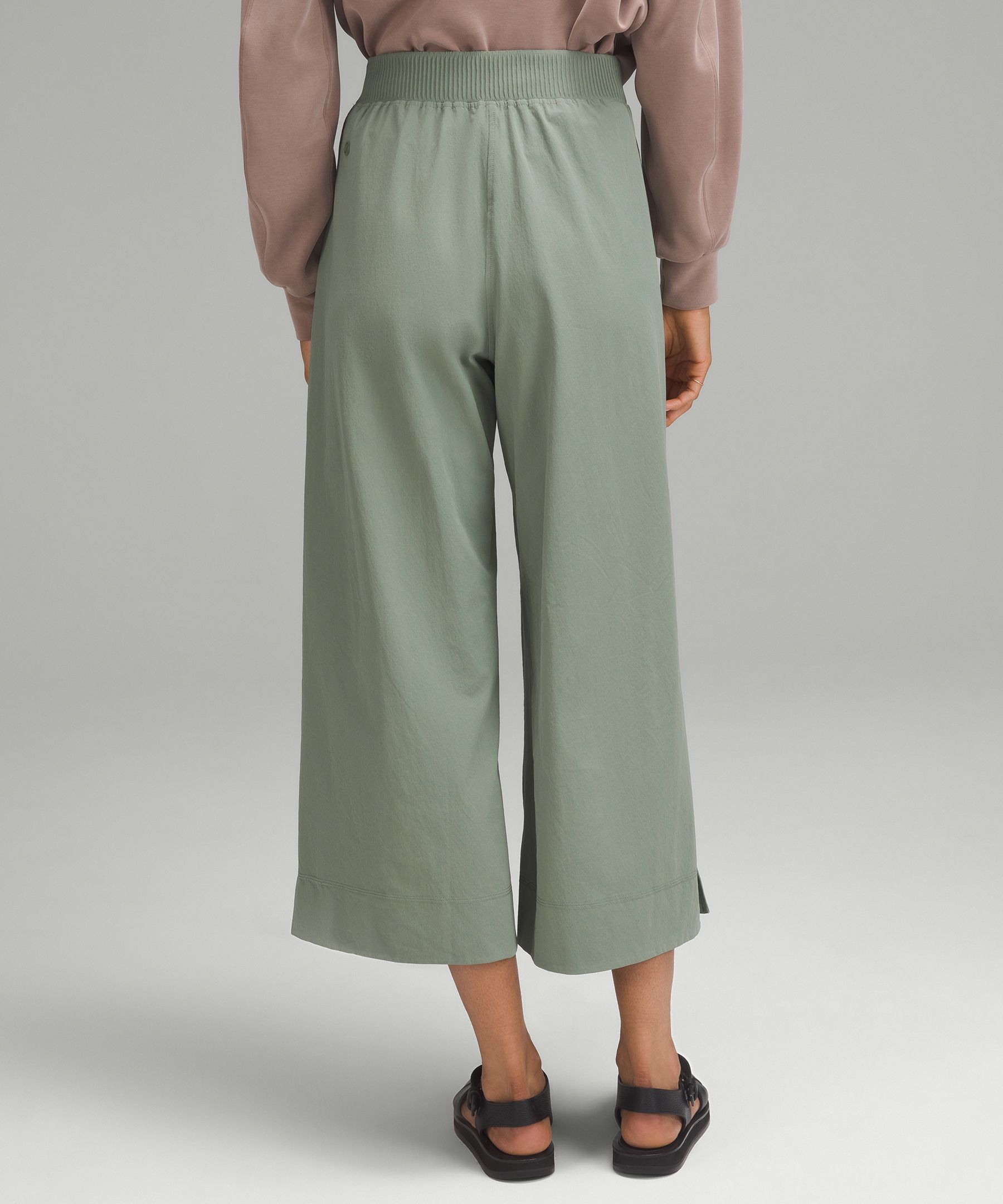 Stretch Woven High-Rise Wide-Leg Cropped Pant