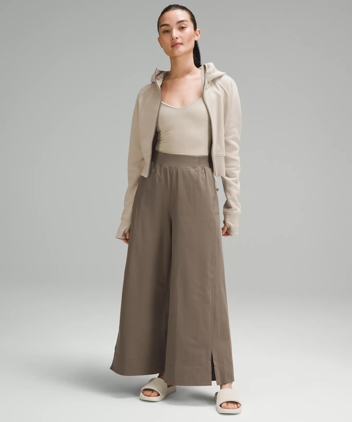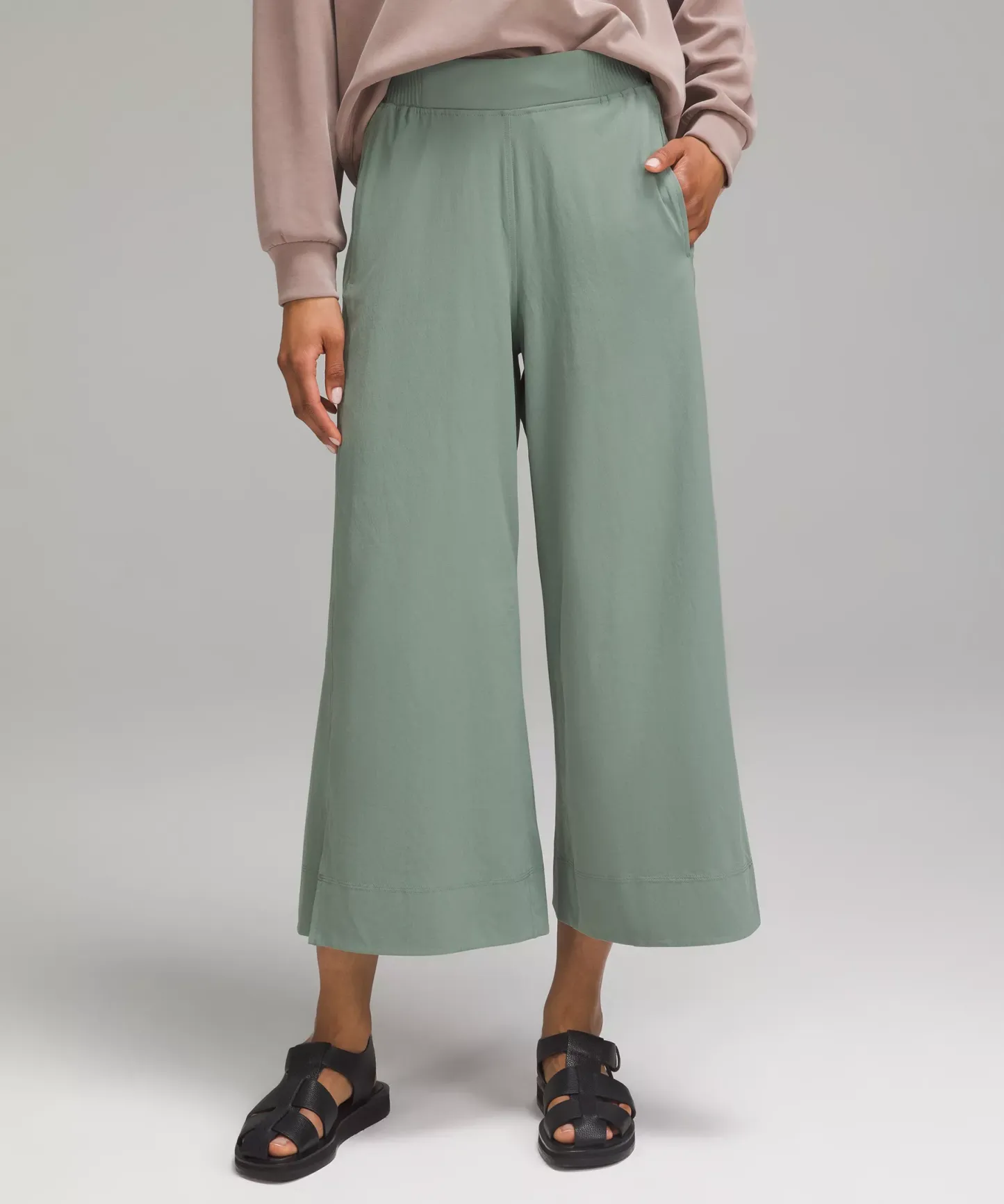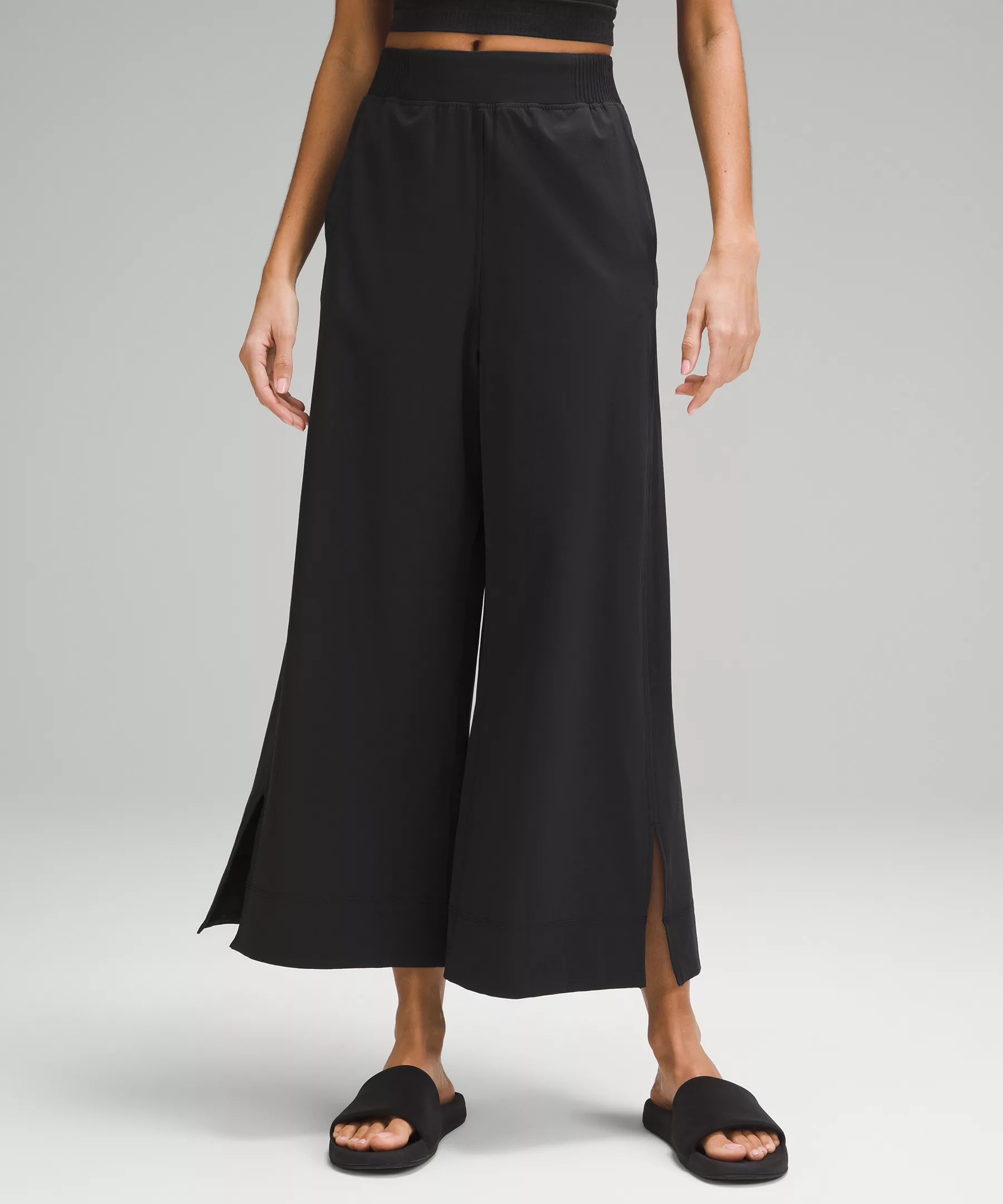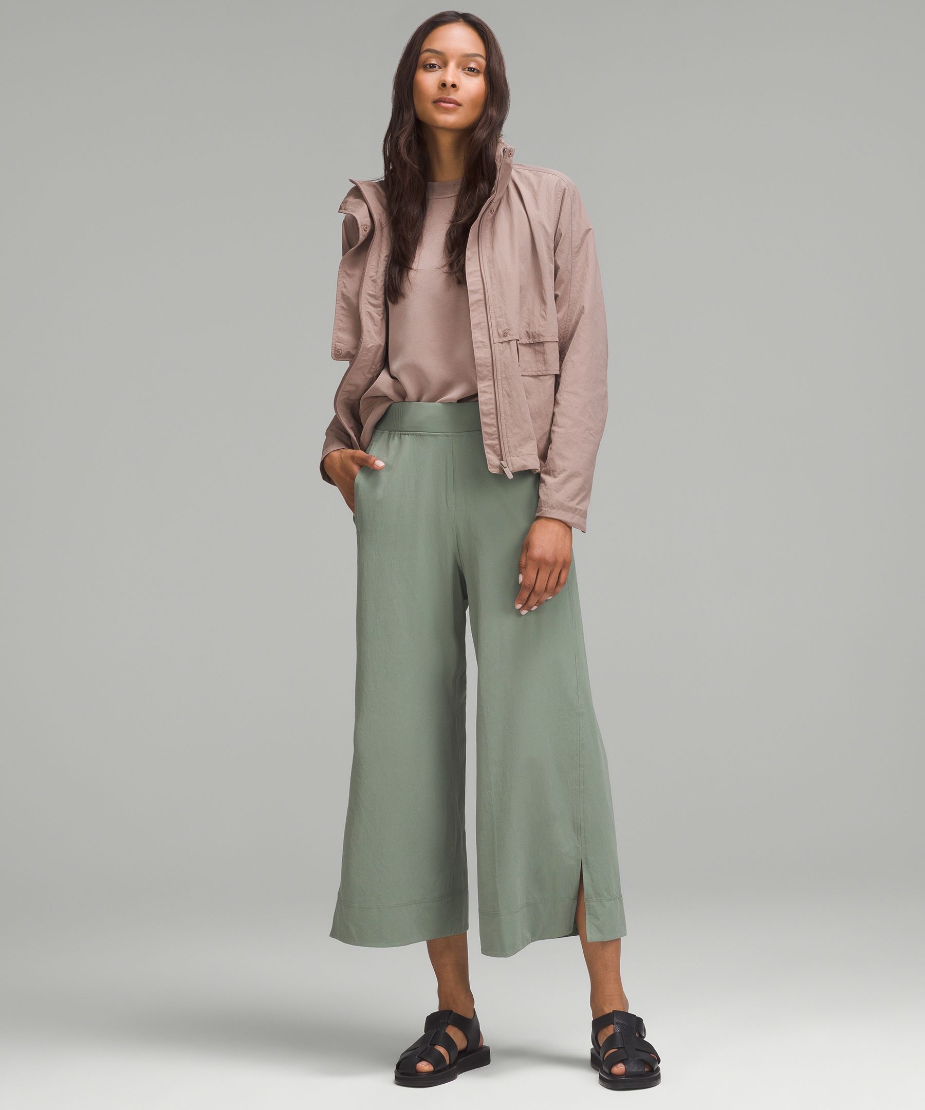 Stretch Woven High-Rise Wide-Leg Cropped Pant