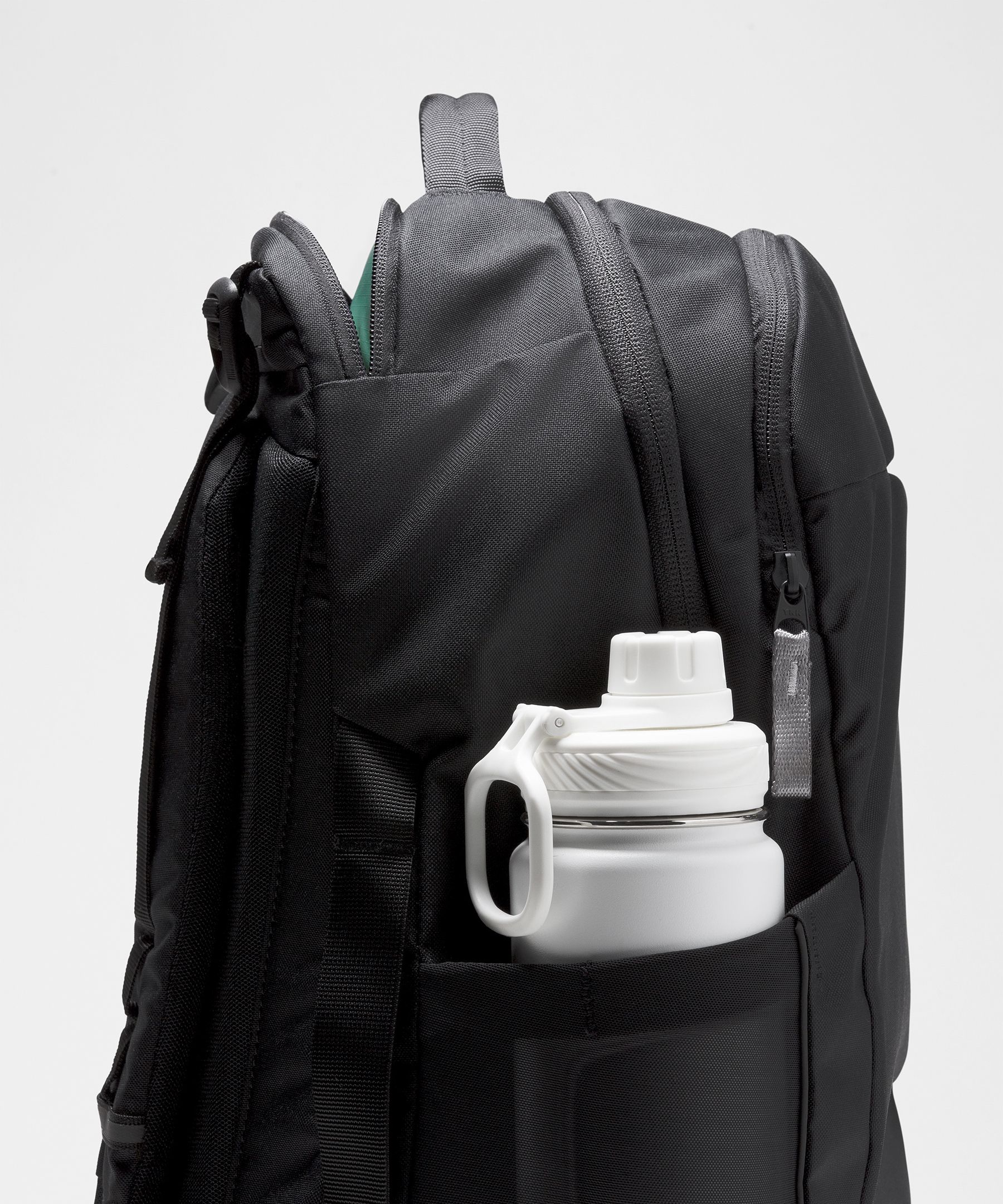 Side pockets fit most water bottles up to 32oz (946ml)