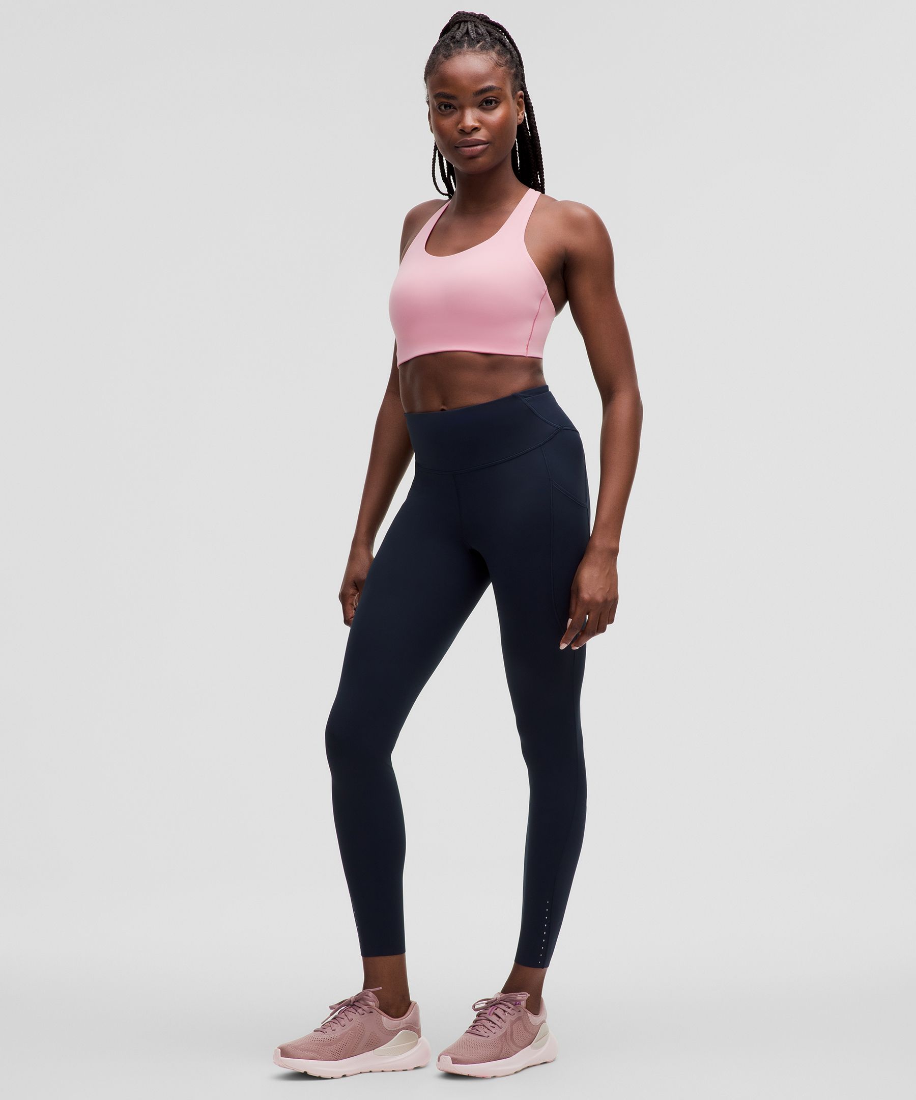 An extra flex groove on the outsole mirrors a woman's footstrike for a smooth ride
