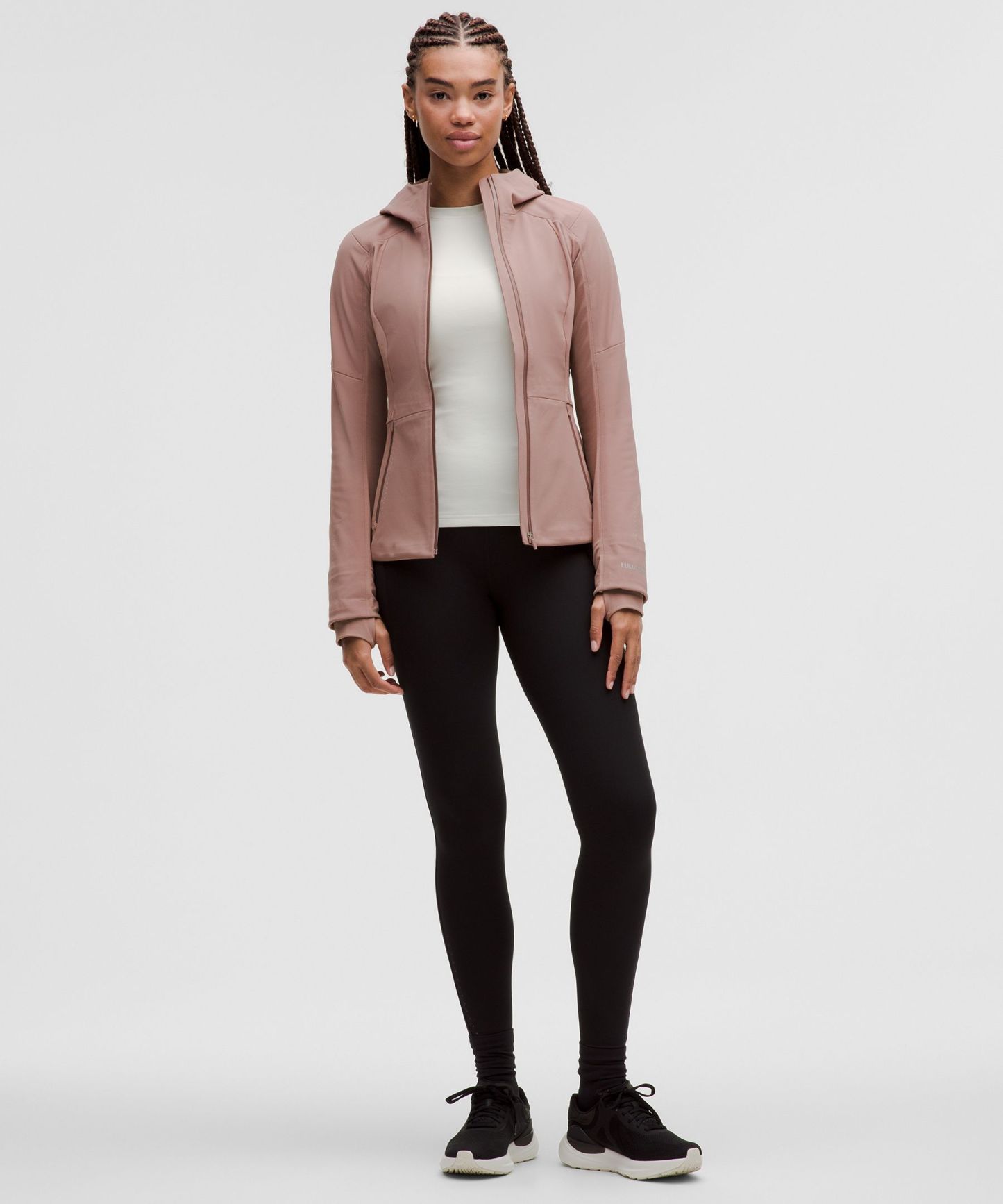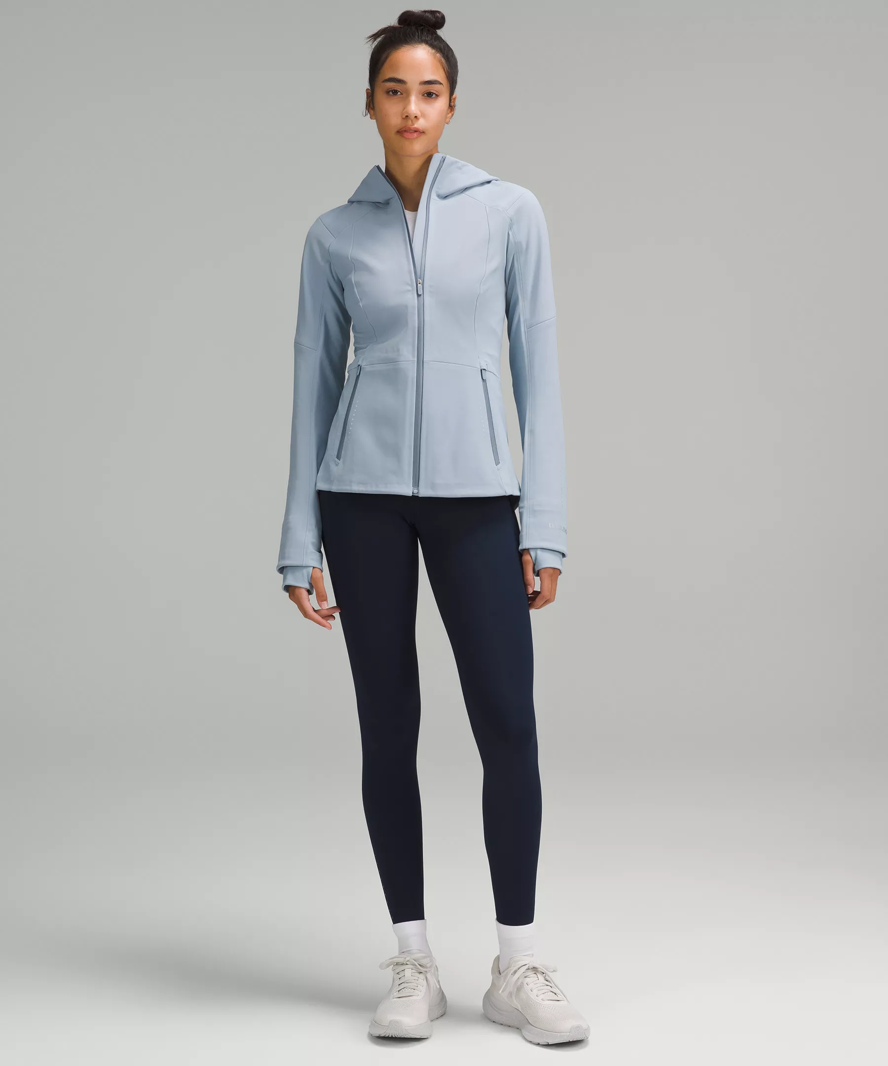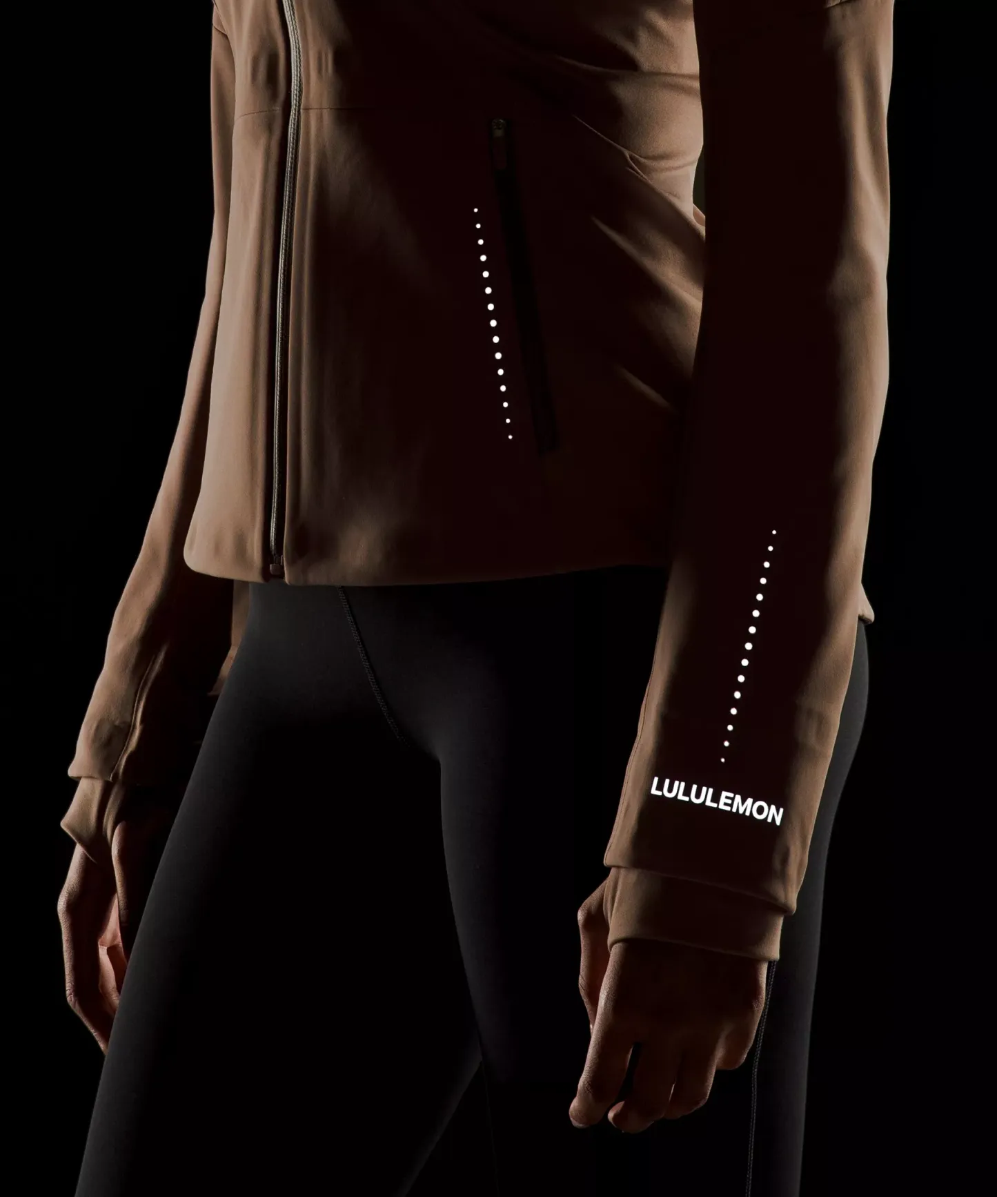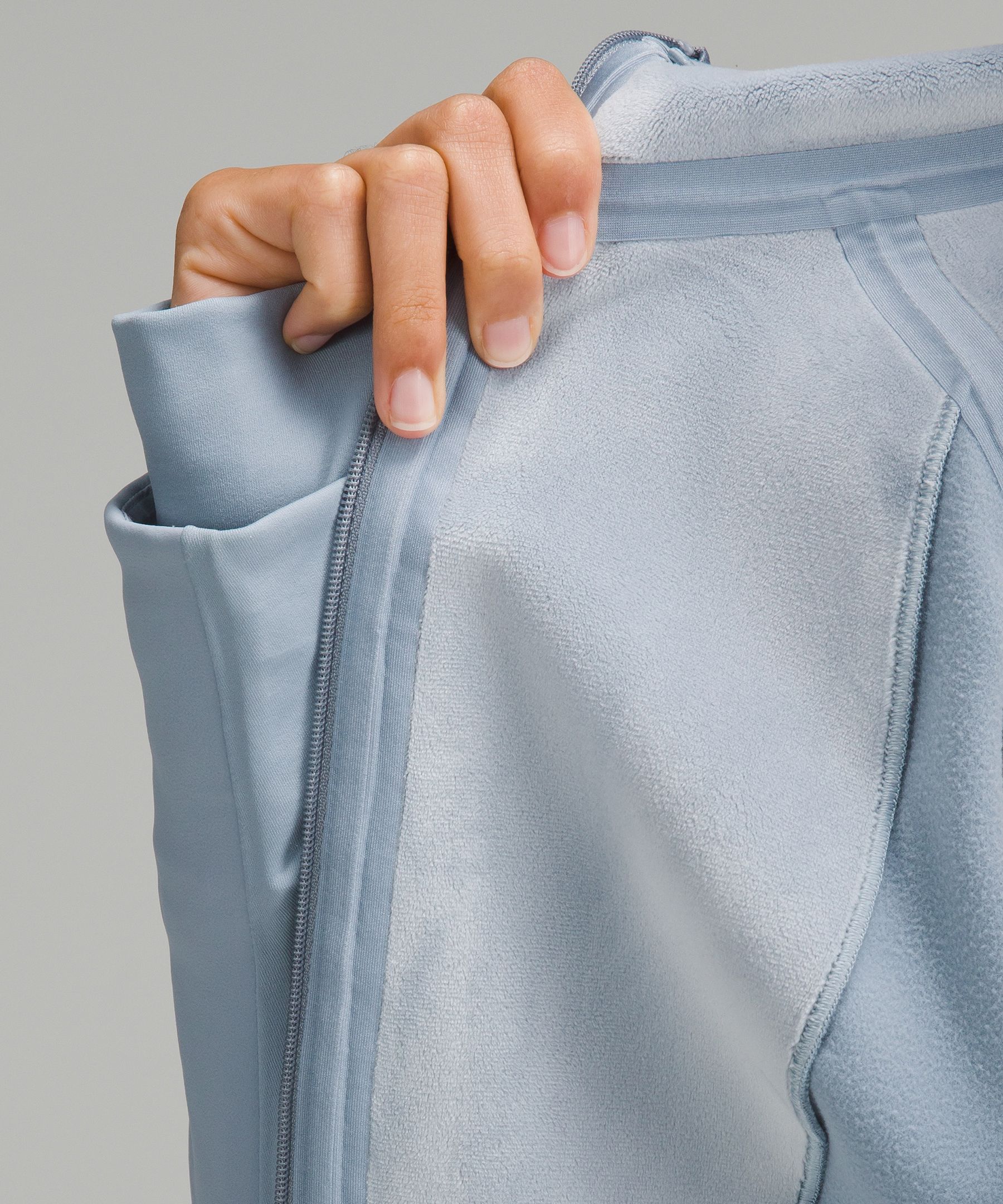 Four-way stretch, water-repellent tech fleece fabric is brushed for warmth