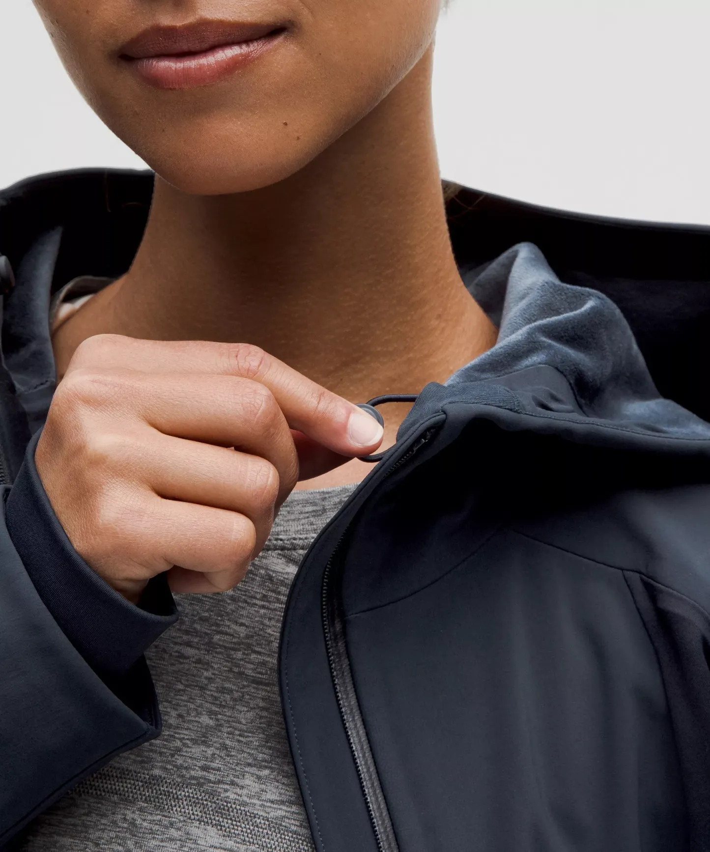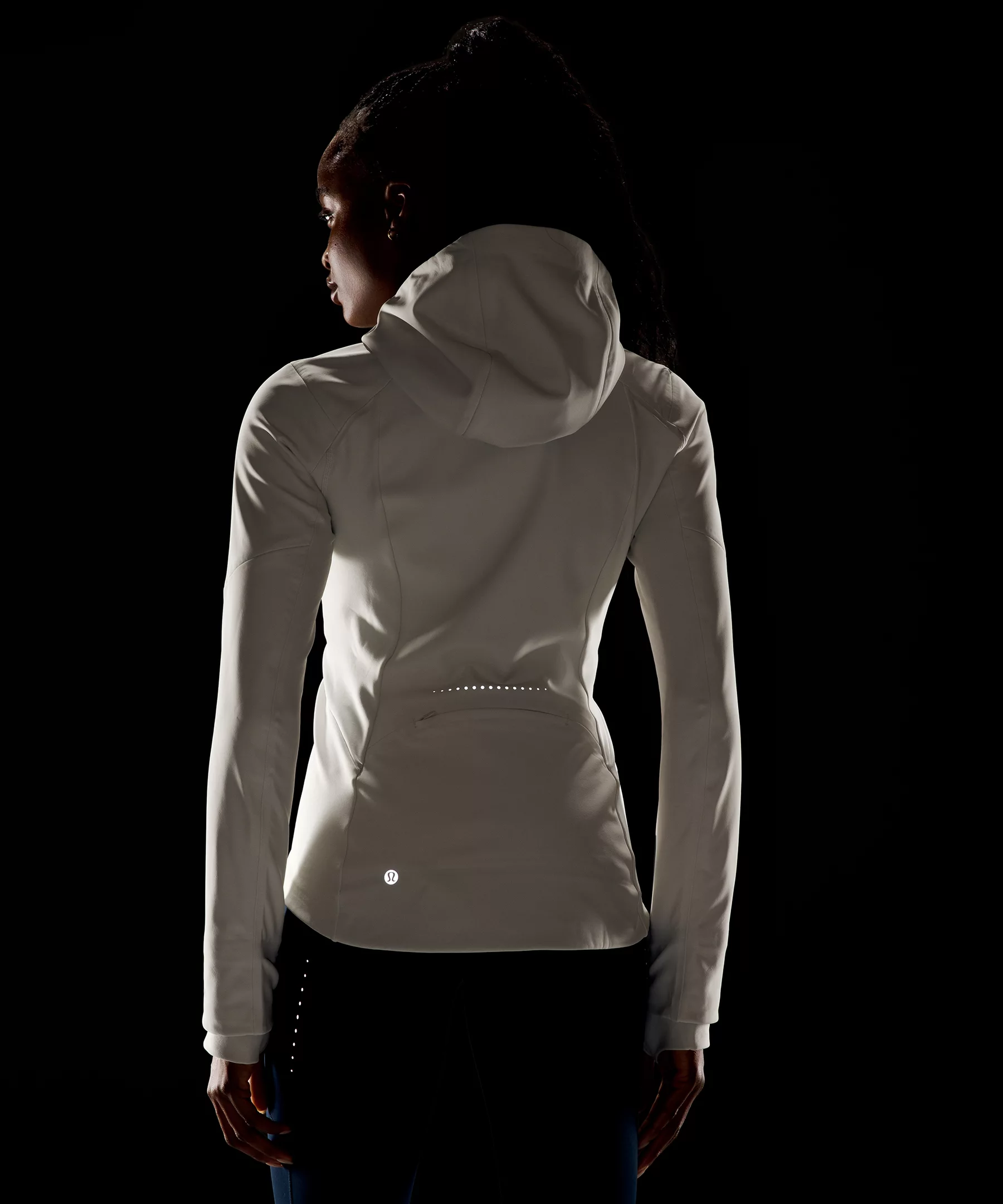Hood cinches at the back to maintain peripheral visibility
