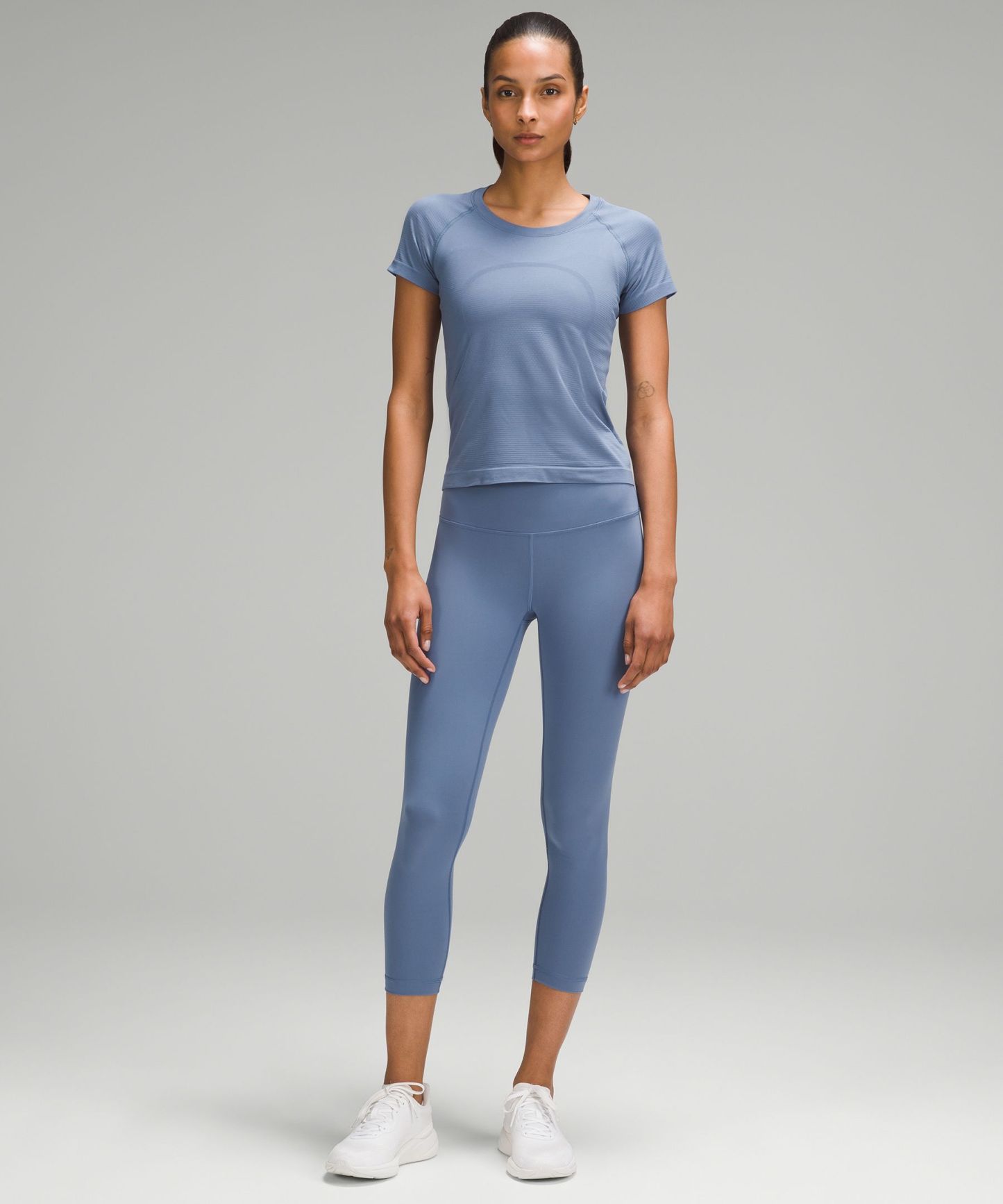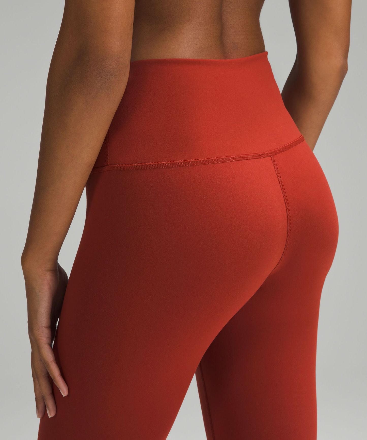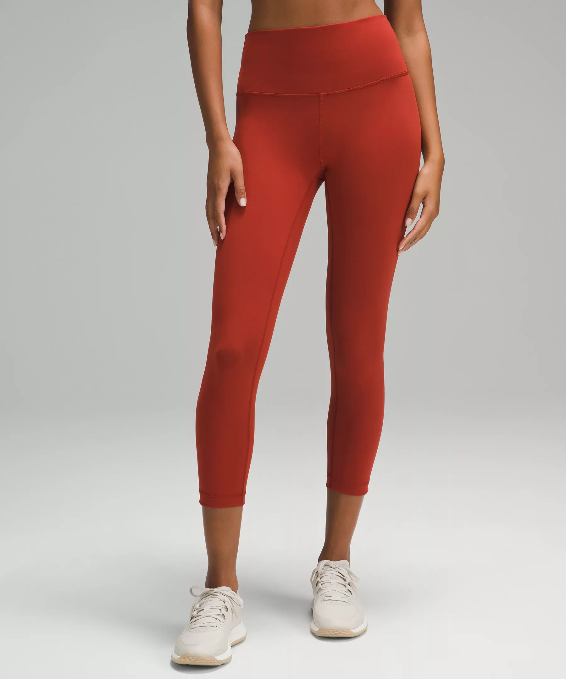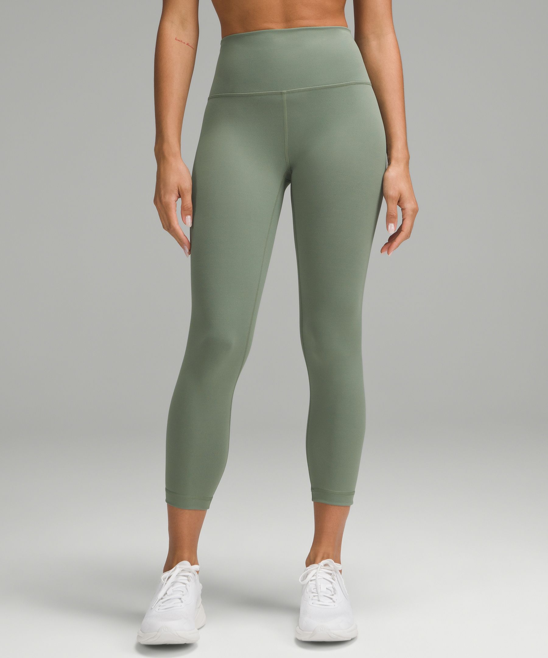 A high-rise waistband keeps you covered as you lift and squat. Our 23" length sits below your calf.